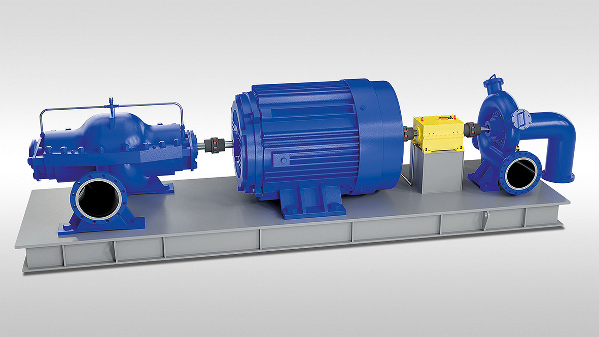 Many pump systems are started by a motor. After the start-up, a Hydraulic Power Recovery Turbine (HPRT), for example, takes over and drives the pump via the FHHS freewheel from RINGSPANN. The starting motor can now be switched off so that the hydraulic energy available in the system can be used efficiently. As a result, energy consumption and operating costs are reduced. This approach is very suitable for industrial applications with continuous pump operation, as it optimizes the entire plant operation.